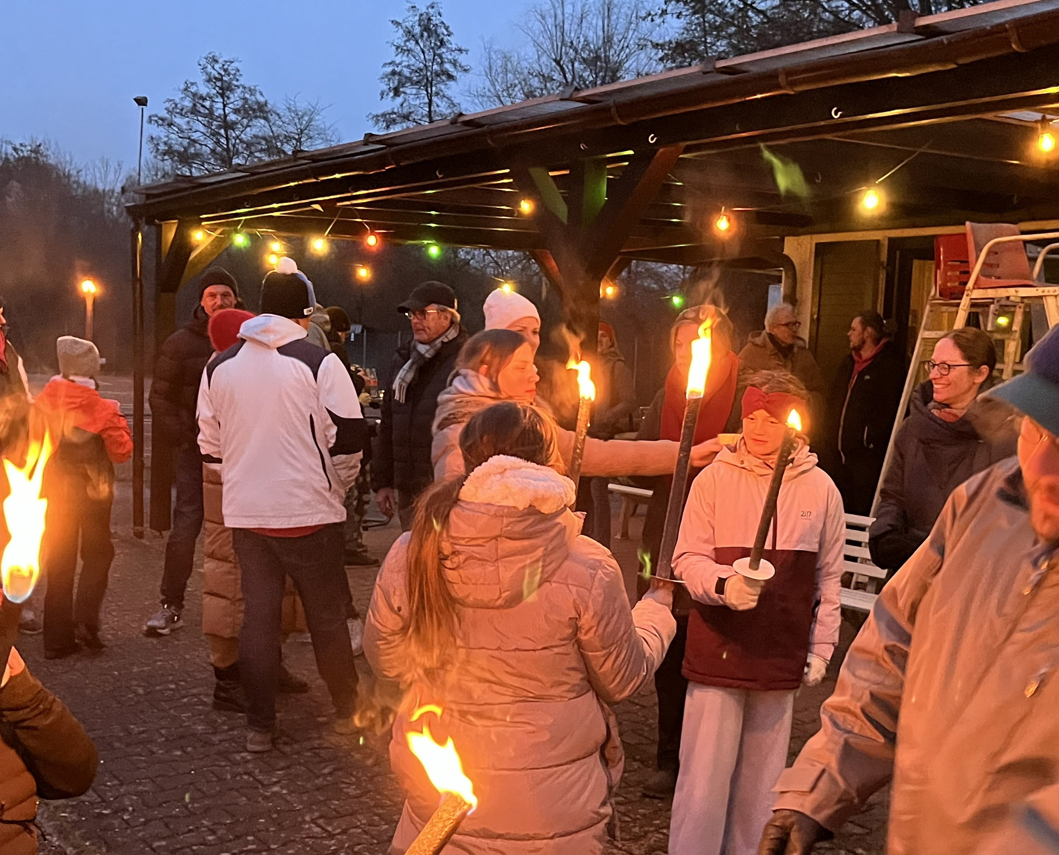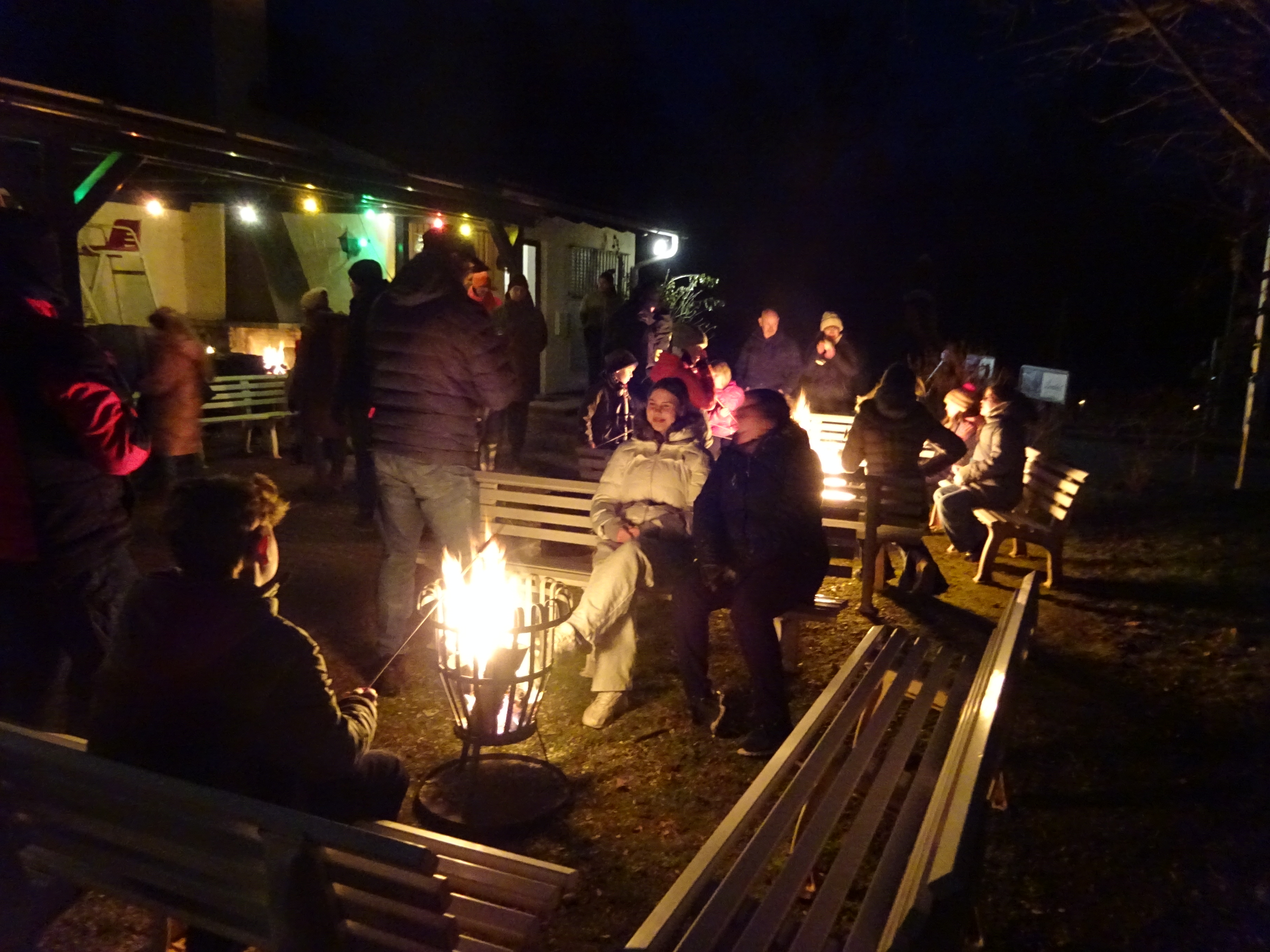 Der Schnee dieser Tage lag bereits in der Luft, vom flackernden Feuerschein begleitet, wurden gemeinsam ein paar Schritte getan, der Erlenbach überquert, sich ausgetauscht und Pläne geschmiedet. Anschließend warteten am Clubhaus Stockbrot und Marshmallows für die Kinder sowie Punsch und Glühwein an der Feuerschale.